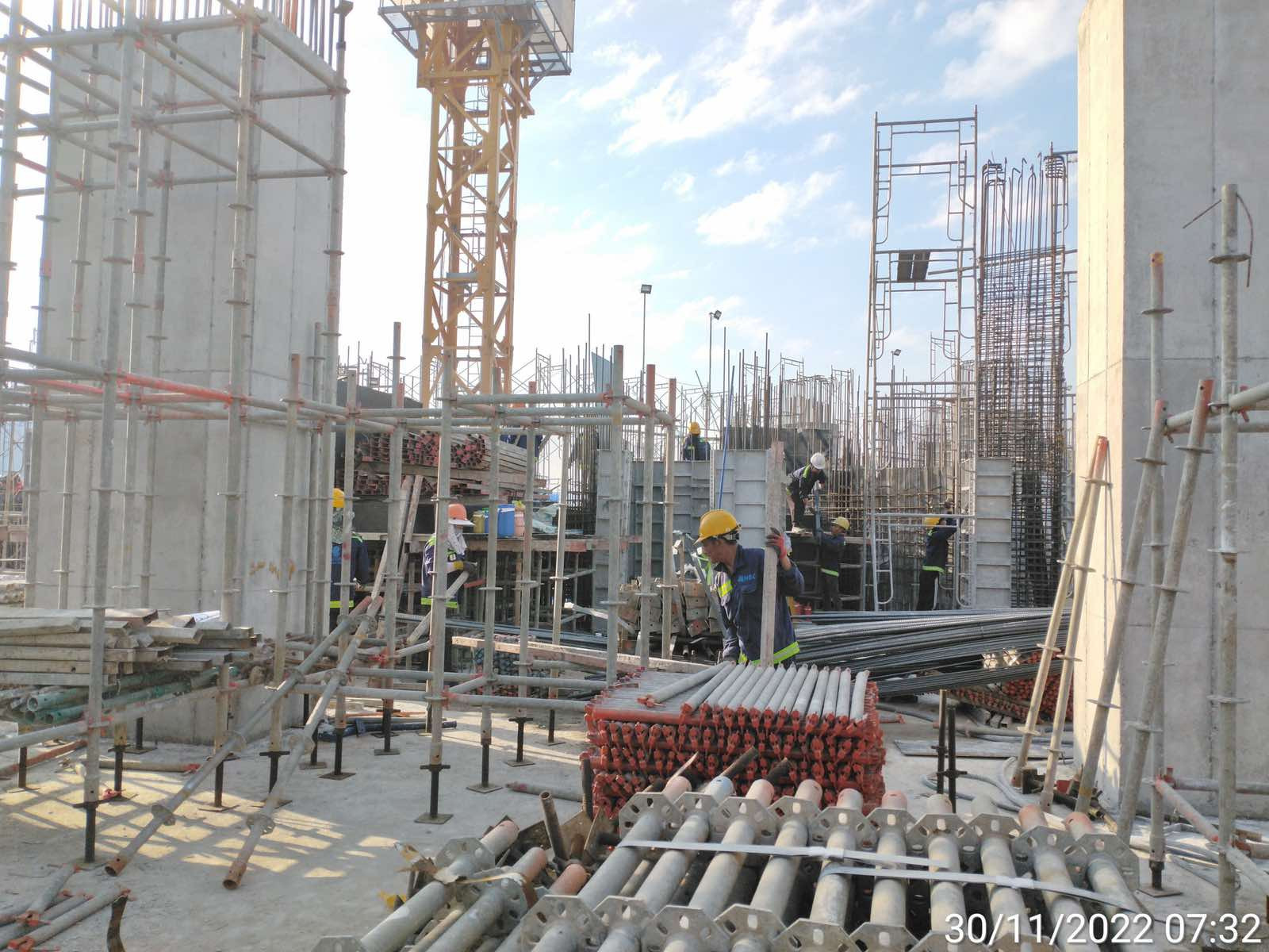 1. Thi công lắp đặt cốt thép cột tầng T1 –> T2: hoàn thành 48/48 cột.